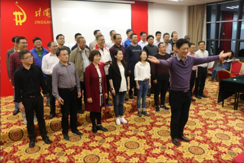 在晚间的联谊会上,各班学员表现出了极大的热情,大家利用学习的间隙排练出了16个文艺节目。青岛大学后勤党委书记王静创作并组织表演的诗朗诵《井冈情》拉开了序幕,由安徽财经大学后勤集团党总支书记杨杰指挥的合唱《没有共产党就没有新中国》,将全场气氛引入高潮。
