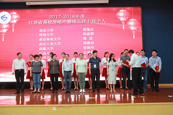 会议隆重表彰了2017—2018年度江苏省高校房地产管理工作先进单位和先进个人,颁发了奖牌和证书。表彰了南京大学等31个江苏省高校房地产管理工作先进单位,河海大学沈益朋等10名江苏省高校房地产管理工作十佳先进个人,东南大学陶文斌等51名江苏省高校房地产管理工作先进个人;表彰优秀论文6篇;宣布立项资助研究课题四项。
