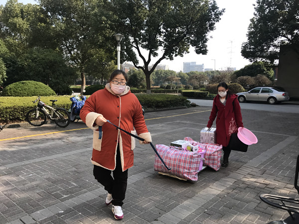2月4日,接学校通知,住在梁林校区的留校学生需在2月5日16时前统一搬到越秀校区。时间紧任务重,接到通知后,宿舍管理服务中心的工作人员便立刻开始了搬迁工作的布置,落实搬迁寝室、安排员工上岗、落实搬家车辆、打扫宿舍卫生、宿舍消毒、安抚学生情绪等一件件工作都有条不紊地进行着。2月5日上午,部门党员发挥模范带头作用,率先投入帮助留校学生搬寝室的工作中,他们给学生提供打包用的编织袋,帮助学生打包及搬运行李,引导学生办理入住,耐心给学生解答疑问,提醒同学们离家在外要注意自身安全、有异常一定要联系老师或宿管人员。2月5日下午,随着搬运车辆驶离梁林校区,所有留校学生已顺利居住到越秀校区。与此同时,梁林校区学生公寓(1)床下桌更换工作却未停止,宿舍管理服务中心办公室人员积极联系工程厂家,确认参与施工人员近期身体状况以及有无出省情况,每天定时测量体温并做好登记,在保证安全的同时确保床下桌工程的顺利进行。