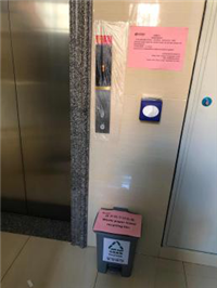 多措并举防病毒。为了减少可能存在的“病毒”的传播全途径,项目部组织员工对学生公寓电梯进行相应的防护措施,设置专用纸巾及垃圾桶。并在各位公寓出入口设立“废弃口罩”回收处,按学校的统一部署,保洁员将废弃口罩统一送到医务室,由学校进行统一处置。
