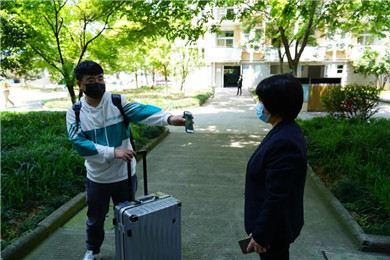 当天,我校对校园周边实行了交通管制,方便到校学生能快速进入专有通道。经过身份核实、体温检测、“学生返校通行码”核验等程序,学生即可入校。进入校区后,学生在宿舍楼出示“学生健康码”,核验登记后进入宿舍。