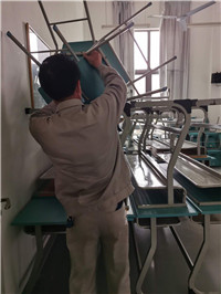 为保障后续师生工作、学习安全,物业服务中心杂工组利用“五一”假期时间,陆续对工科楼、教学楼等64间教室进行了布局改造。通过搬运调整5600余张桌椅、粘贴防疫知识宣传、粘贴桌椅序号等方式以达到减少教室使用人数的目的,降低传染风险。