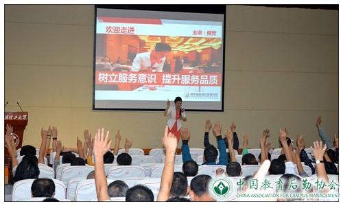 2015年10月20日下午1:30---3:30,武汉理工大学饮食服务公司在会议中心301举办了“树立服务意识,提升服务品质”专题讲座,饮食服务公司全体员工(马区)近300人参加了专题讲座。后勤集团党委书记赵高山、副总经理王如意等负责人应邀参加了会议。