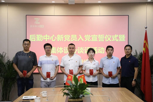 为庆祝中国共产党成立101周年,喜迎党的二十大胜利召开,更好发挥基层党组织战斗堡垒作用和党员先锋模范作用。党旗飘飘映丹心,誓言铮铮表忠诚。7月4日下午,浙江农林大学后勤中心举行新党员入党宣誓仪式暨集体谈心谈话活动。后勤中心党委副书记、纪委书记钱潮出席活动,5名新发展的党员参加活动。