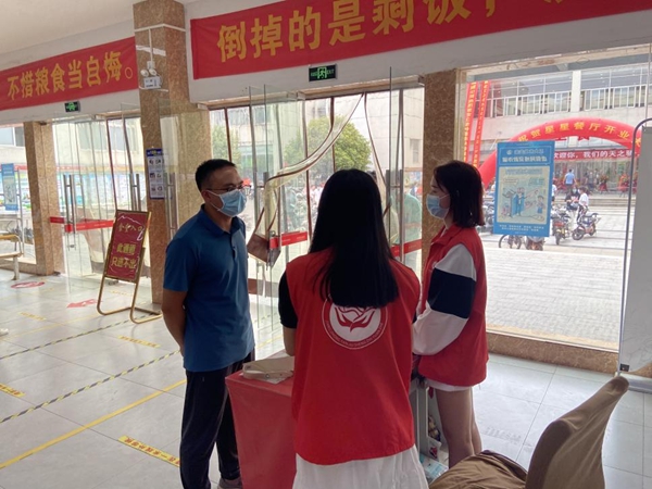 为落实学校疫情防控工作,9月3日,江西中医药大学后勤集团饮食中心主动与在各食堂值守的研究生院志愿者加强联系,对在食堂维护秩序的志愿者进行了现场培训。饮食中心负责人分别到明月餐厅、星星餐厅及欧思麦等食堂进门口对在值勤的志愿者们进行了现场培训,要求提醒进入食堂用餐的师生规范佩戴口罩,购餐排队保持一米线距离、用餐同向单坐等。