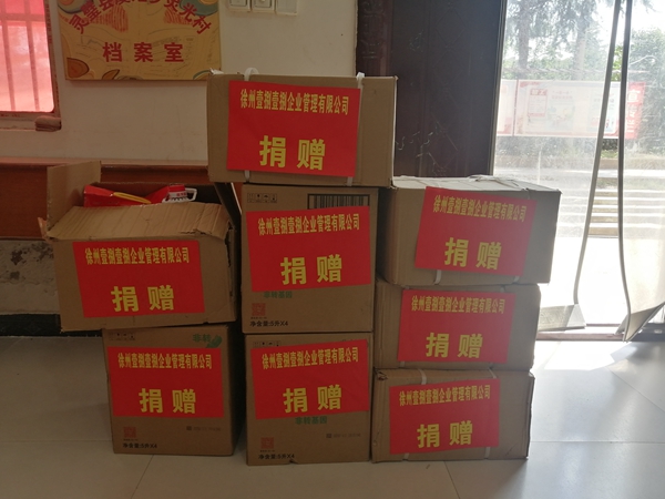随后,赵建岭、陈仲元、王伯平、马柯、4家企业负责人以及总务部第五党支部为村留守儿童代表捐赠了护眼灯和由天猫校园店提供的学习用品,带着由徐州壹捌壹捌企业管理有限公司提供的米和油慰问品实地慰问了村脱贫监测户,看望了驻村干部;同时,南京中快人餐饮有限公司和苏州君创餐饮管理有限公司为村捐赠了“村村响广播喇叭”套装;总务部第五党支部为灵光小学捐赠了直饮水机和安装了太阳能照明灯。
