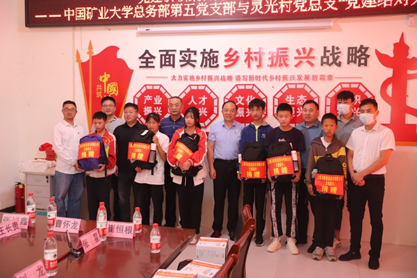 乡村振兴工作是一项系统工程,需要人民团体、社会组织、企事业单位等社会各方面参与。为此,9月6日,中国矿业大学副校长赵建岭以普通党员身份参与总务部第五党支部与学校定点帮扶的安徽省灵璧县灵光村党总支的“党建结对共建”活动,召开座谈会,为村留守儿童代表捐赠学习用品,慰问村脱贫检测户,为灵光小学捐赠直饮水机和安装太阳能照明灯、看望驻村干部,助力乡村振兴。我校总务部党委书记、部长陈仲元,总务部党委副书记、纪委书记王伯平,总务部副部长马柯,总务部第五党支部书记陆春香、部分党员和经后勤社会化改革引进的南京中快人餐饮有限公司等4家优质社会企业在徐负责人以及我校帮扶干部、灵璧县挂职副县长邵波,灵璧县虞姬镇党委书记周灵宁,灵光村党总支书记、村委会主任代翠荣,我校驻村干部杨爱东参加了活动。