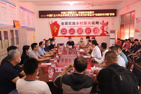 活动座谈在灵光村党群服务中心举办。赵建岭肯定了总务部第五党支部所辖的能源管理中心和智慧总务建设管理办公室为学校改革与事业发展所发挥的重要作用,赞扬了其勤奋、务实、卓越、奉献的精神品质,认可了经后勤社会化改革引进的优质社会企业服务育人的特色做法,鼓励了今年驻村干部为期不长的帮扶工作,并希望借助此次党建结对共建契机,进一步发挥总务部人才、技术、资源等优势,为灵光村乡村振兴提供智力支持,提升广大群众生活质量。陈仲元介绍了南京中快人餐饮有限公司、苏州君创餐饮管理有限公司、徐州壹捌壹捌企业管理有限公司、天猫校友店4家企业为助力乡村振兴工作所做的改善基础设施建设、学习用品、生活用品的捐赠付出,期待总务部第五党支部进一步发挥能源和“智慧”优势,与灵光村党总支建立长期关系,常态化帮扶灵光村。陆春香介绍了总务部第五党支部的基本情况和党支部不断推进能源社会化改革和后勤信息化建设及“三全育人”的做法和成效。周灵宁和代翠荣分别代表镇和村感谢近年来中国矿业大学对灵光村的精准帮扶,肯定了驻村干部驻村以来发挥主观能动性,全面推进乡村振兴工作,期待进一步发挥聪明才智,推动乡村振兴工作更上一层楼。