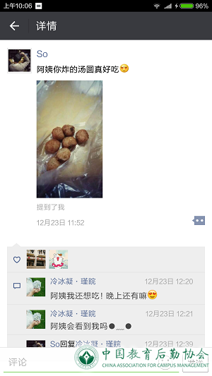 当然,除了及时解决学生提出的意见和建议,张阿姨还特别赶时髦,每周都会推出集赞送菜的活动让惠于学生。而在刚刚过去的圣诞节期间,“浙海院第一食堂”推出了满就送活动,得到了在校生的一致好评,“平安夜,第一个苹果是妈妈送的,第二个苹果是食堂阿姨送的。”“没想到,收到的第一个苹果,是食堂送的,感动死我了。”