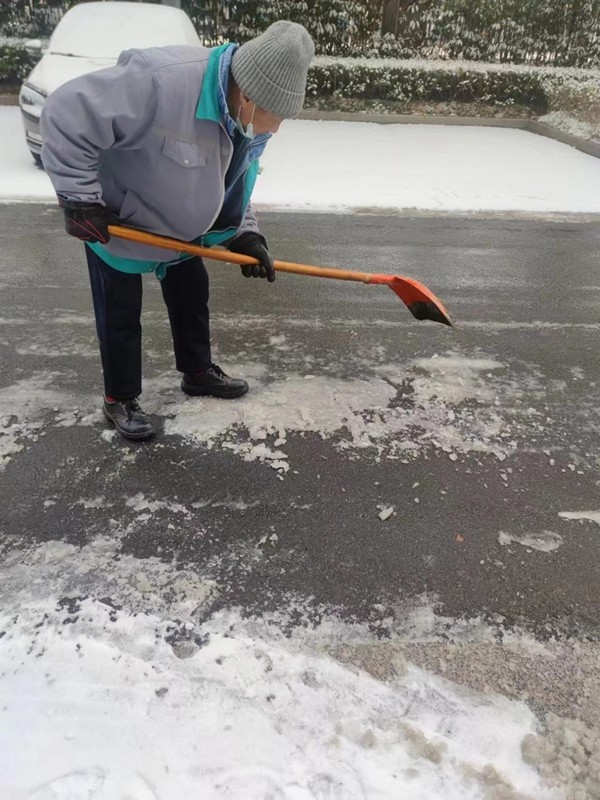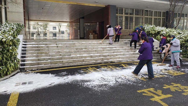 12月18日下午至12月19日上午,江苏护理职业学院后勤保卫党总支组织党员干部、广大职工在科技路校区、黄河路校区开展了清雪除冰行动。在大家的不懈奋战下,通往教学楼、学生公寓、办公楼、食堂楼、后勤楼、医务室等重要场所的所有路段均已完成冰雪清扫和撒盐作业,切实保障了全校师生的安全通行,有力展现了后勤人在“急险难”任务中能够冲得上、完得成的良好工作风采。驻校物业公司人员等外包服务单位人员给予这场行动以有力的配合,发挥了重要作用。以下为现场图片: