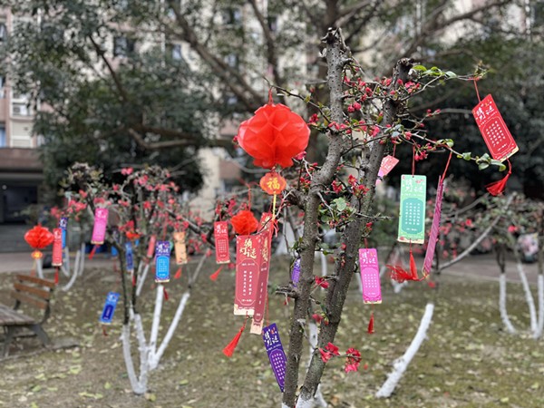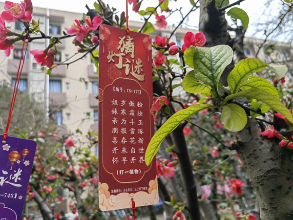 元宵节前夕,宿舍员工提前准备、精心布置,在本科二组团学生宿舍区挂满了红彤彤的灯笼和五彩缤纷的灯谜,吸引了同学们驻足观赏。一个个充满趣味的谜面给参与者带来极大的乐趣,有的被同学们迅速猜中,有的则让人冥思苦想,久久难以破解,活动现场处处洋溢节日的喜庆气氛。