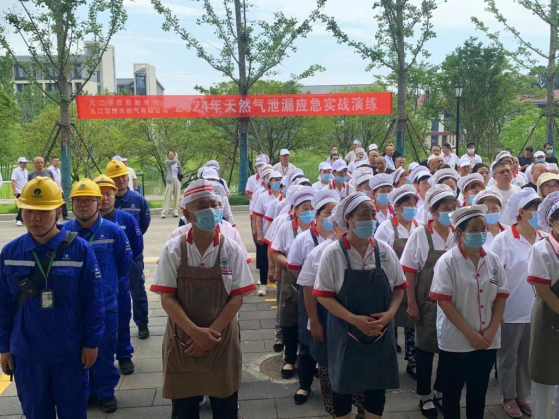 为了贯彻“人人讲安全、个个会应急--畅通生命通道”的安全生产方针、提升校园安全事故应急处置能力、促进我校燃气安全管理工作,6月14日,九江学院后勤管理处联合九江深燃天然气有限公司(深燃公司)在紫薇园校区学生二食堂进行燃气泄漏应急实战演练。