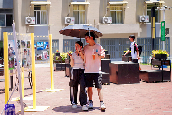 毕业生驻足校园记忆墙