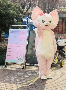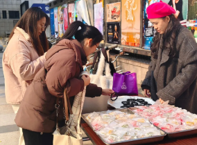 桐乡校区工作人员在食堂门口赠送定胜糕、烤肠、手工制品等小礼物,同学们还能与小熊拍照打卡,也是寓意满满。
