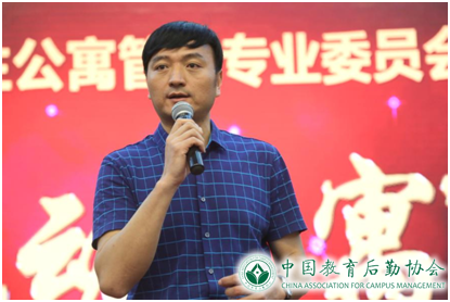 他讲到,当前,我国教育领域综合改革已全面展开,社会服务产业进入快速发展与转型升级的新时期,广大师生对后勤服务需求由单一转向多元,校园后勤服务体制与模式正由封闭、单一向开放、多元转变。改善学生公寓住宿条件、建设小康公寓的需求和呼声日渐增强,服务管理引入新模式、新理念、新科技已成趋势,实施标准化、专业化管理引起广泛重视。