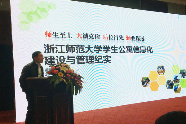 ——浙江师范大学后勤集团学生社区管理部主任黄昌财以《浙江师范大学学生公寓信息化建设与管理纪实》为题与大会分享了学生公寓信息化建设的经验举措。