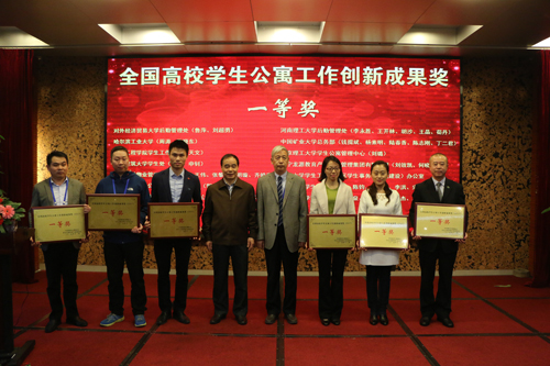 大会对荣获全国高校学生公寓工作创新成果奖(2017)的获奖单位和个人进行表彰并举行颁奖仪式。共表彰创新成果93项,包括一等奖14项、二等奖28项、三等奖39项、优秀奖12项。这些奖项是从全国26个省市寓专会报送的228项初评成果中评审出的。除此之外,还有15个省市寓专会获得了最佳组织奖。“全国高校学生公寓工作优秀成果奖”每两年申报评审一次,是全国寓专会创建打造“服务型”、“研究型”、“创新型”“三型”组织的一项重要举措。2017年,经研究决定将“全国高校学生公寓工作优秀成果奖”更名为“全国高校学生公寓工作创新成果奖”,目的是鼓励和调动各地各校进一步做好高校学生公寓工作的积极性,改革创新、攻坚克难,破解行业共性难题,不断提高工作成果的实用性和参考价值,发挥示范引领带动作用,引导和推进全国高校学生公寓工作再上新台阶。