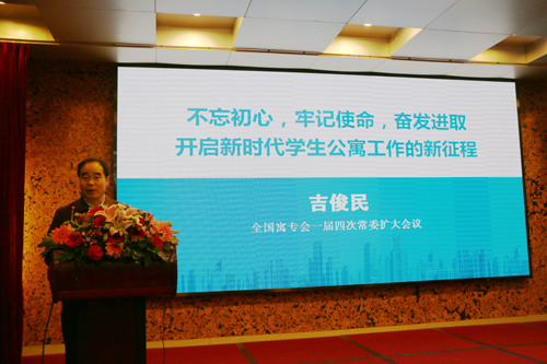 吉俊民主任以“不忘初心,牢记使命,奋发进取,开启新时代学生公寓工作的新征程”为主题,向大会做了工作报告。寓专会2017年认真学习贯彻协会相关精神和要求,积极适应校园生活需求多样化,公寓服务管理开放、多元、规范发展的趋势,以标准化建设为引领,以安全管理为根基,以信息化智能化建设为抓手,以强化育人为导向,积极搭建平台,凝心聚力,开拓创新,在组织建设、标准研制、行业培训、交流研讨、课题研究、成果推广、资政辅政、专家库建设等方面潜心探索,扎实推进,取得新的进展。吉主任还部署了寓专会2018年工作计划要点。
