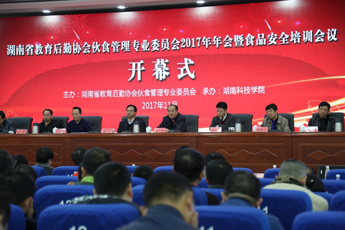 11月24日,湖南省教育后勤协会伙食管理专业委员会2017年年会暨食品安全培训会议在湖南科技学院召开,来自全省近70所高校、150余家高校后勤企业代表共400余人参加会议。