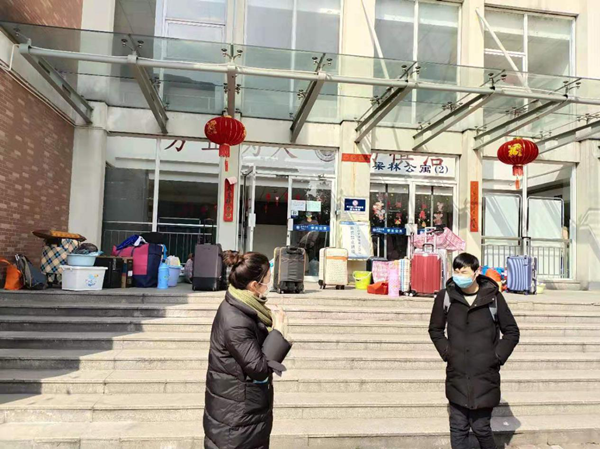 2月4日,接学校通知,住在梁林校区的留校学生需在2月5日16时前统一搬到越秀校区。时间紧任务重,接到通知后,宿舍管理服务中心的工作人员便立刻开始了搬迁工作的布置,落实搬迁寝室、安排员工上岗、落实搬家车辆、打扫宿舍卫生、宿舍消毒、安抚学生情绪等一件件工作都有条不紊地进行着。2月5日上午,部门党员发挥模范带头作用,率先投入帮助留校学生搬寝室的工作中,他们给学生提供打包用的编织袋,帮助学生打包及搬运行李,引导学生办理入住,耐心给学生解答疑问,提醒同学们离家在外要注意自身安全、有异常一定要联系老师或宿管人员。2月5日下午,随着搬运车辆驶离梁林校区,所有留校学生已顺利居住到越秀校区。与此同时,梁林校区学生公寓(1)床下桌更换工作却未停止,宿舍管理服务中心办公室人员积极联系工程厂家,确认参与施工人员近期身体状况以及有无出省情况,每天定时测量体温并做好登记,在保证安全的同时确保床下桌工程的顺利进行。