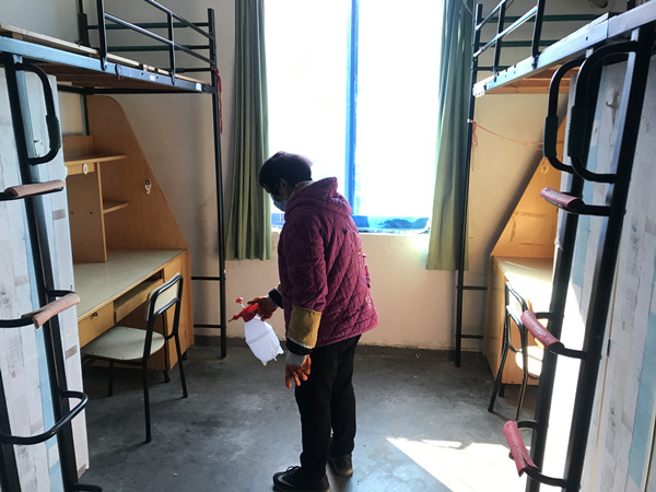 宿舍管理服务中办公室立即制定《疫情防控工作方案》,有效预防疫情在学生公寓的传播。要求所有员工必须戴口罩上班,进楼宇大门先洗手、测量体温,身体无异常方可上岗;要求保洁员每天用84消毒液拖洗大厅地面及过道地面,对留校学生宿舍的公共部位进行全面消毒并提醒留校学生保持通风;值班员每天给学生量一次体温并做好记录,有异常及时上报;主管楼长每天关注员工健康状况以及外出人员去向,重点关注湖北籍员工和温州台州重点疫区员工,安抚有恐慌心理的员工继续做好服务工作,每天汇报片区员工情况;加强寒假开放楼宇安全工作,对学生公寓楼门禁进行24小时加锁,学生进出楼宇需值班员开门加刷卡,同时每三天检查一轮留校学生寝室,检查学生寝室用电情况,询问学生身体情况,劝说学生减少外出,做好自身防疫工作。