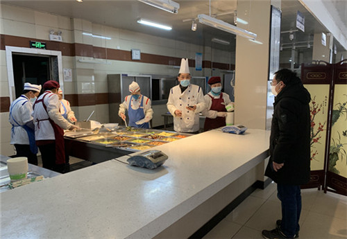 2月12日下午,后勤服务集团总经理贺征兵在综合办公室副主任袁凯的陪同下,走访慰问坚守防疫一线的后勤员工,调研各二级部门的防疫工作。