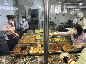 餐饮服务防控,根据餐饮服务工作的特点,第一时间召开防控工作会议,布置防控措施,发布《做好新型冠状病毒感染的肺炎防控工作的通知》,明确各项防控措施,安排专人负责餐饮员工的排查工作,重点关注湖北籍员工的返乡、亲友来访等情况;落实防控物资,在物资紧缺的情况下,采购人员用尽一切办法采购防控所需物资;由专人负责,加强卫生消毒措施,安排卫生专管员负责每日的员工晨检、消毒工作;落实场地、消毒工作(每日2次);加强食品原材料的管控工作,严抓私自采购、严禁购买活禽;扩大人员管理及消毒工作的范围,包括仓库、冷库、公共浴室的消毒,物资配送人员的信息管理、食品原材料配送车辆的消毒等;在餐饮大楼门口张贴温馨提示,提请就餐人员注意做好防控措施;在公共洗手处放置药皂,供就餐人员使用。同时正确对即将出现蔬菜涨价的情况作出预判,及时迅速地落实一大批速冻蔬菜保障餐饮需求,并做好了配送人员补充,为可能出现餐饮配送服务做好准备(需隔离观察的返校学生)等。