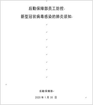 开展疫情防控教育,编发防疫须知。加强后勤全体职工的防疫防控宣传教育,编发《后勤保障部员工防控新型冠状病毒感染的肺炎须知》,从传播途径、易感人群和密切接触者等几个方面宣传新型冠状病毒肺炎知识,普及各类学校消毒技术要点,并对每天必须到校工作的人员和未返校返岗的人员进行防护知识的分类指导。
