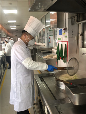 厨师长郭江涛跟家人说好了值守完三十和初一就回家,疫情来临,原本大年初二换岗回家的计划被一推再推,封闭管理不能离校,家住涿州的郭江涛原本1小时回家的路变得遥不可及;任向东厨师长,家就在一墙之隔的小区居住,也不能与家人团聚,每日依靠视频与家人联络,近两个月来家中的起居照顾全靠爱人独自承担,主食班长高来明家就住在学校的小白楼,也要严守封闭制度不能回家,他们深知,病毒无声无形,守住防控底线就是一丝丝的风险都不能带到后厨来,他们将亲情放在心底,带头坚守着后厨阵地,规划营养方案、统筹每日食谱,规范执行流程,落实防控措施,井然的执行每日的防控保障任务。