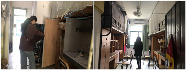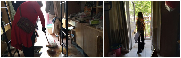 4月14至15日,带着同学们对自己小窝的“关心”,楼长们开始工作啦!每到一间寝室,楼长们首先打开寝室的阳台门,保证空气对流,随后根据同学们前期预约的“特殊服务”,进行花草浇水、过期食物丢弃、空调除湿以及衣柜通风。除此以外,楼长们还仔细检查了寝室内是否出现漏水点、水电是否可以正常使用、寝室基础设施是否有损坏、阳台的下水口是否有堵塞等内容。