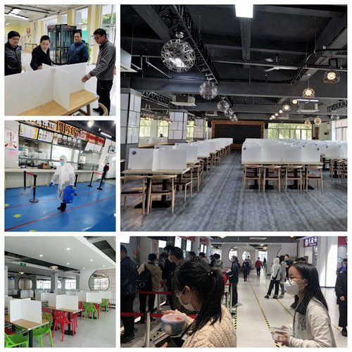 在各食堂,近万个餐桌隔板已经安装到位,餐厅入口处加装的洗手池也已投入使用。饮食服务中心强化责任担当,严格做好食品安全监管工作,开学前的消毒设施、物品摆放、环境卫生、菜品留样、防蝇防鼠设施、索票索证、工作人员健康证明等一系列工作措施均严格落实到位,并邀请上级主管部门南京市市场监督管理局来校检查指导,确保万无一失地做好开餐保障和疫情防控工作。