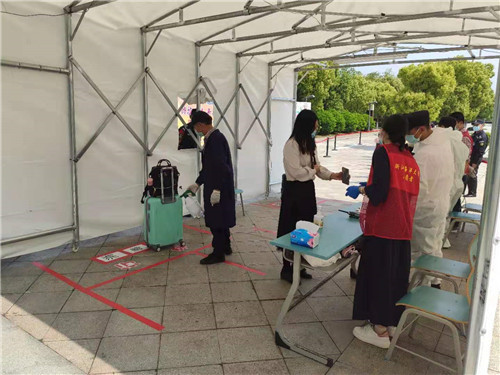 此次海大防疫攻坚战,校医院位于一线,物业服务中心秉承着服务师生、团结互助的精神,抽调水电组人员协助校医院搬运分发防疫物资并前往盐仓汽车站测量学生体温,助力前线。