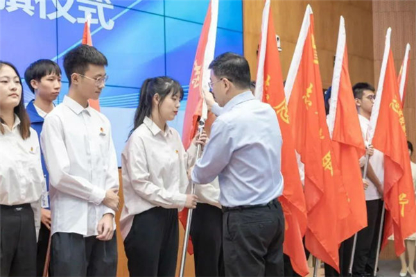 舒培冬为坚决制止餐饮浪费志愿者队伍授旗