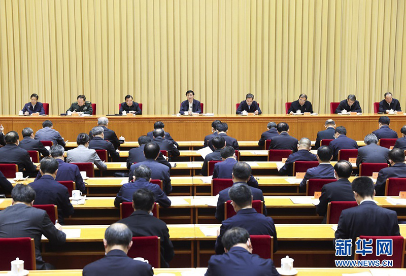 11月17日,中共中央政治局常委、中央书记处书记王沪宁在北京出席中央全面依法治国工作会议并作总结讲话。(新华社记者 庞兴雷/摄)
